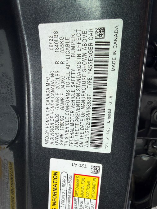 Pictures of used 2022 Honda Civic Sedan Sport CVT in Southwick, MA